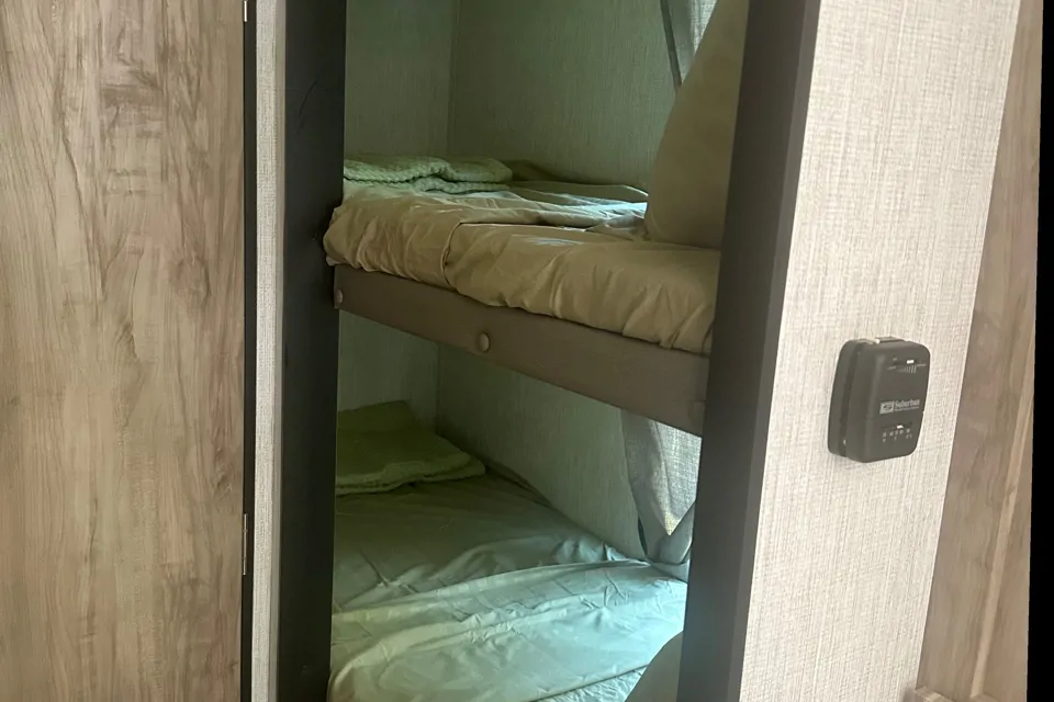 We are excited to offer a trailer that smaller trucks and suv's can handle at only 3285lbs dry and coming in at 22 feet with a single axle. This small camper still has rear bunks and comes with everything you need to enjoy your trip including bedding for 3 beds (queen and bunks) and all cooking pots pans, dishes, and silverware to make your trip perfect. There is a small front storage compartment as well as a large driver side rear storage. This is a brand new camper! NOTE WE HAVE 6 UNITS AVAILABLE TO RENT SO IF THIS ONE DOES NOT MEET YOUR NEEDS ASK US WHAT ELSE WE HAVE AVAILABLE!
