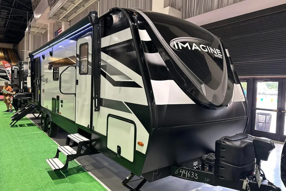 2023 grand design imagine. Fully equipped and ready to camp provided linens, a fully stocked kitchen, outdoor kitchen, gray awning to sit under indoor outdoor music. This unit also has air-conditioning solar panel and heat ready to go.