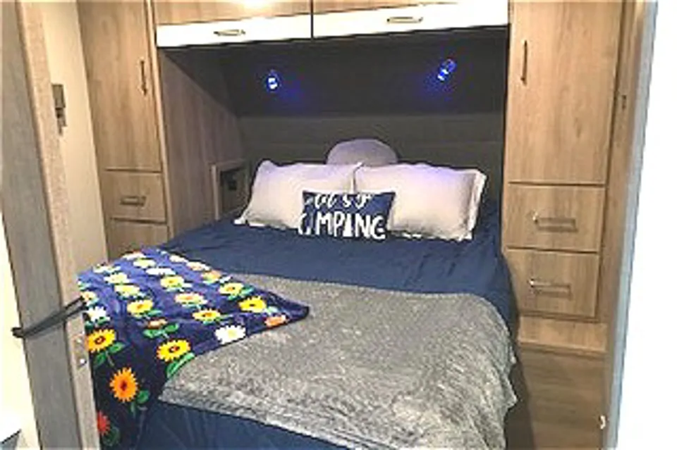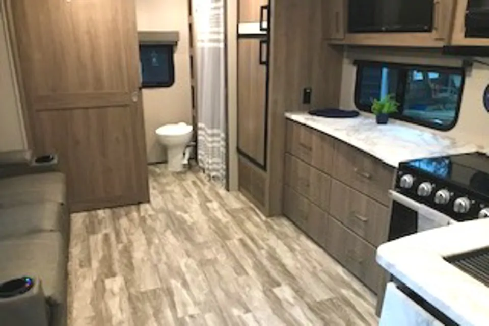 COUPLES RETREAT Blues Traveler is the ideal travel trailer for couples seeking a weekend getaway or an extended adventure. Thoughtfully designed and packed with extra amenities, it ensures a relaxing and enjoyable experience.