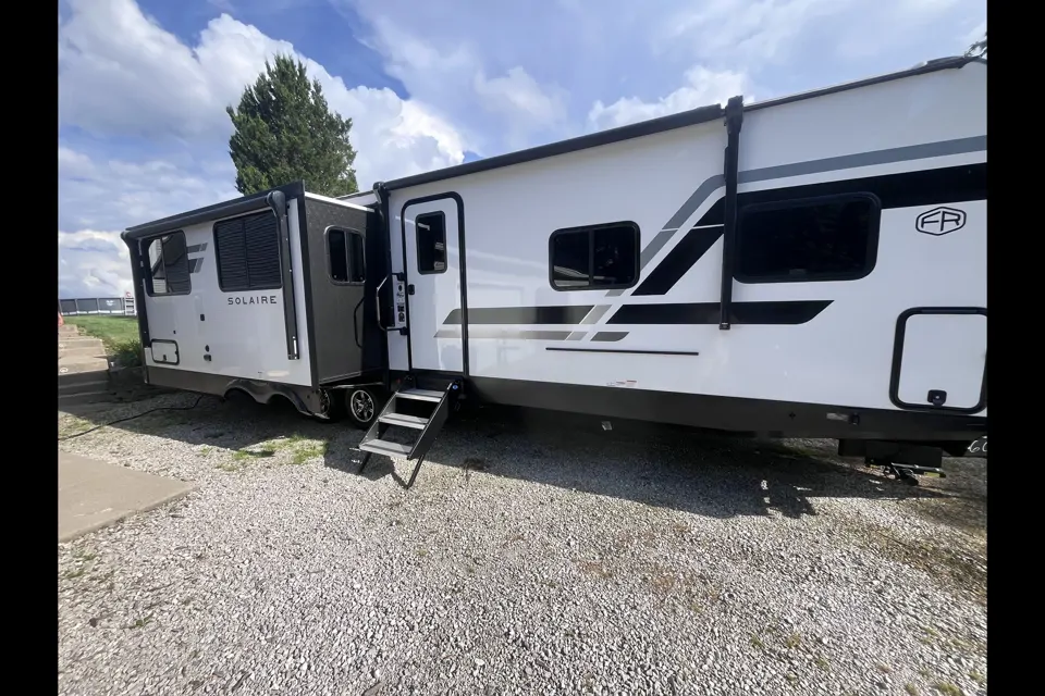 This trailer has 1 kitchen. Inside, you have a 3 burner stove, oven, and a microwave to cook delicious meals. The refrigerator and freezer give plenty of room to keep all of your food fresh. And when you want to enjoy the great outdoors, there’s a griddle if requested. The camper comes equipped with two televisions. The larger tv is in the main living area. A dvd player and a small selection of movies are provided. The second tv is in the master bed room. Both tv’s are “Smart tv’s”. Both TV's can be connected to cable connect if available at your destination.