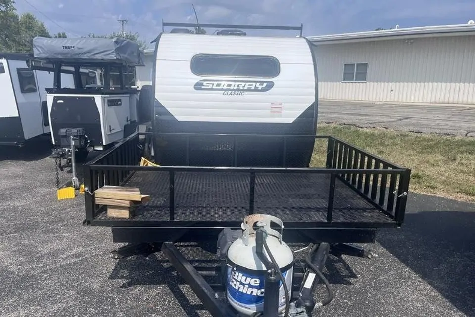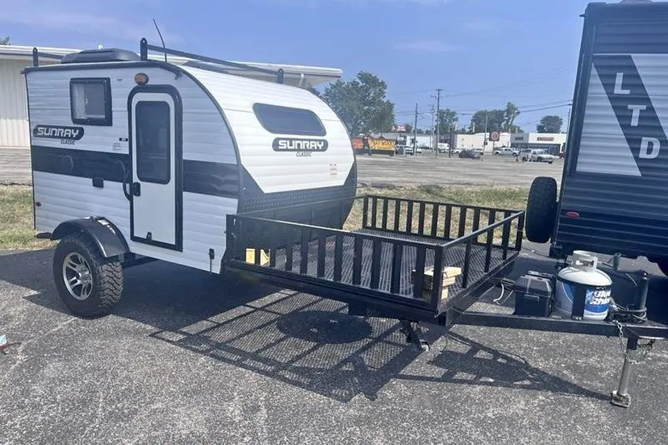 Escape the ordinary and hit the road in style with this fully equipped, off-road capable trailer Towable by an SUV! Whether you’re exploring rugged trails, relaxing in nature, or cooking gourmet meals under the stars, the Sunset Sunray 109E is your perfect sneak peek into life owning your own teardrop camper.