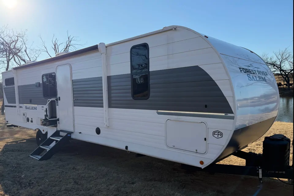Turn your next getaway into unforgettable family memories with our pristine, brand-new 2026 Forest River Salem travel trailer. This luxurious bunkhouse RV combines spacious comfort, modern amenities, and adventure-ready design – all delivered and professionally set up at your chosen campsite. No towing, no hassle – just arrive and start making memories!