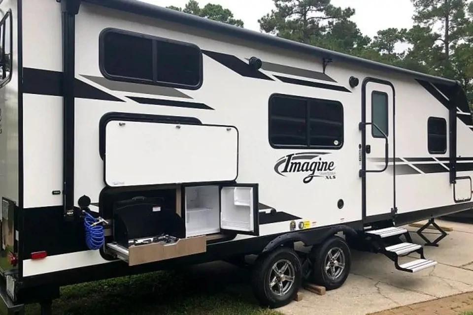 Double over double rear bunks, separate private master bedroom in front, outdoor kitchen with slide,... this is the one! The Grand Design Imagine XLS is the Rolls Royce of travel trailers.