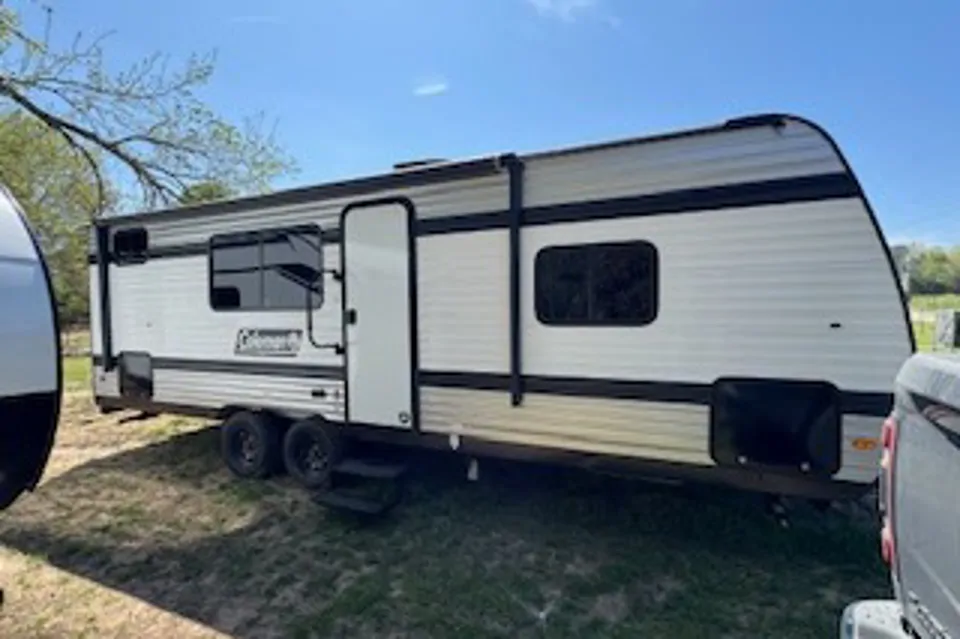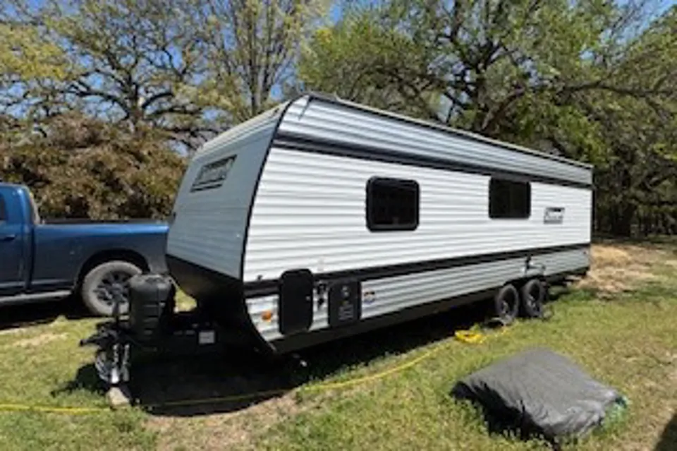 Cole is a new 2025 Keystone Coleman 23b travel trailer. He will comfortably sleep 4 with a queen bed and large bunk beds. This unit is lightweight enough to be easily towed behind your half ton vehicle. Let Cole be your vacation home at the lake or on your cross country vacation.