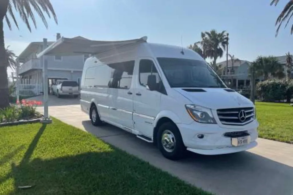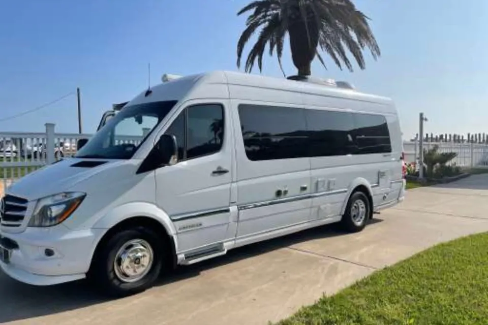Two burner stove, kitchen sink, fridge with small freezer, 2 LCD TV’s, WiFi, microwave oven, shower and toilet, oversized automatic King Bed in rear, seats 8 comfortably going down the road. Available bike rack can be added, with capacity to hold 4 bikes. Air conditioning available while in camp sites connected to 30 AMP shore power or by running on board generator. The turbo-diesel Sprinter gets tremendous mileage (avg is about 18/mpg) and handles many driving conditions well. Plenty of available on-board storage is available. The coach is located in Tulsa, OK - delivery, set-up, and pick-up can be accommodated with additional fees - including pick-up and drop off from Tulsa International Airport.