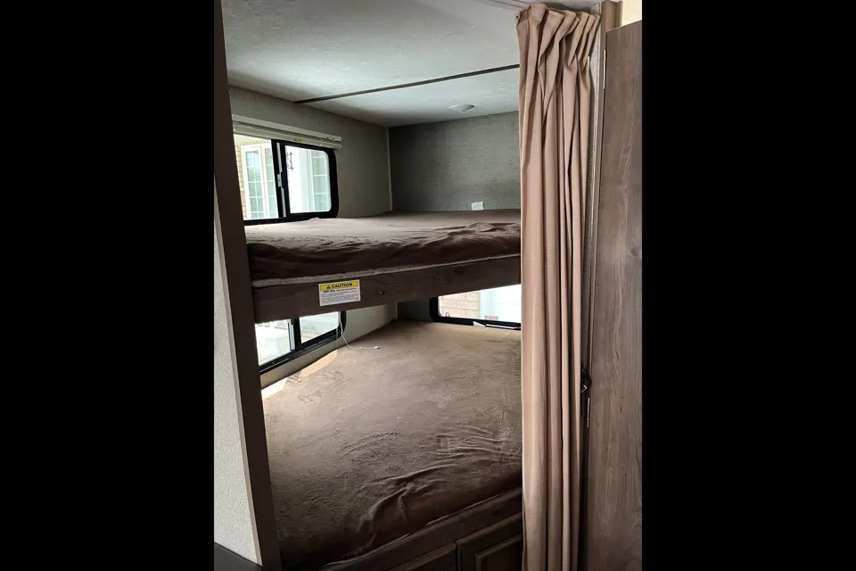 Our well-loved trailer is clean, cozy, and perfect for your next getaway! It features a double bunk bed, a comfy queen Murphy bed, and a dinette that easily converts into an extra sleeping space. Inside, you’ll find a functional kitchen with an oven (still brand new—never been used!) and everything you need to prep meals indoors.