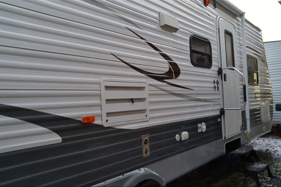 Sleep up to 9 with a queen bed in the front, fold down U shaped dinette, fold out sofa and a rear bunk house with 3 bunks