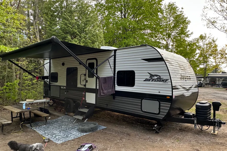 jayco jay flight slx 260bhw Rental trailer. Sleeps up to 10, warm welcoming trailer with the camping essentials! No tip outs, easily towable (less than 5000lbs). Perfect for a family getaway or a friend group looking for a no hassle set up and tear down camp adventure! Will provide delivery and set up, as well as removal for $2.50 per km.
