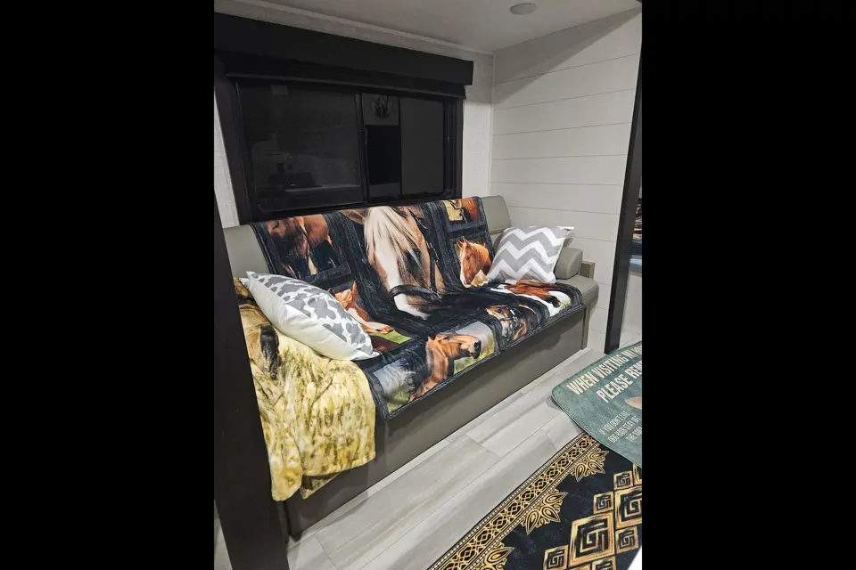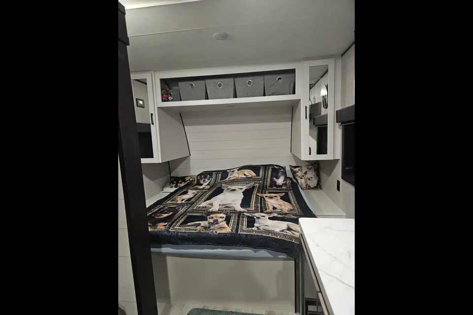 Our trailer is clean, modern, and fully equipped so you can simply arrive and enjoy your trip. It includes solar power, a power tongue jack, keyless entry, and all the essentials needed for a stress-free stay. The layout is very family friendly, with a roomy seating area for relaxing or playing games, comfortable sleeping spaces, and lots of storage for your gear. Whether you’re planning a weekend at a provincial park or a longer outdoor adventure, this trailer provides a cozy and convenient home base for making great memories.