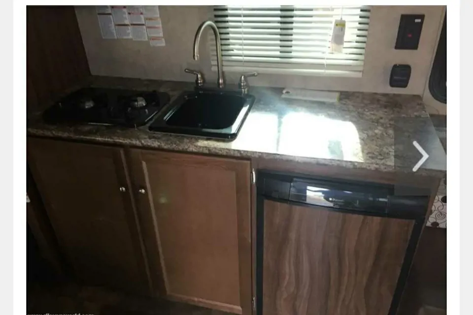 This comfortable trailer is a family friendly and well loved get away. Great to fit on smaller sites, easy towing and perfect for your camping needs. With a toilet / shower in the bathroom. Bunk beds and 2 double beds for your sleeping needs. Kitchen has a sink, gas top stove, microwave and fridge/freezer combo. Lots of storage space and an indoor dining table. AM/FM radio with Bluetooth and speakers on both inside and out. If you have any questions please feel free to text or call me directly at 437 350 4593