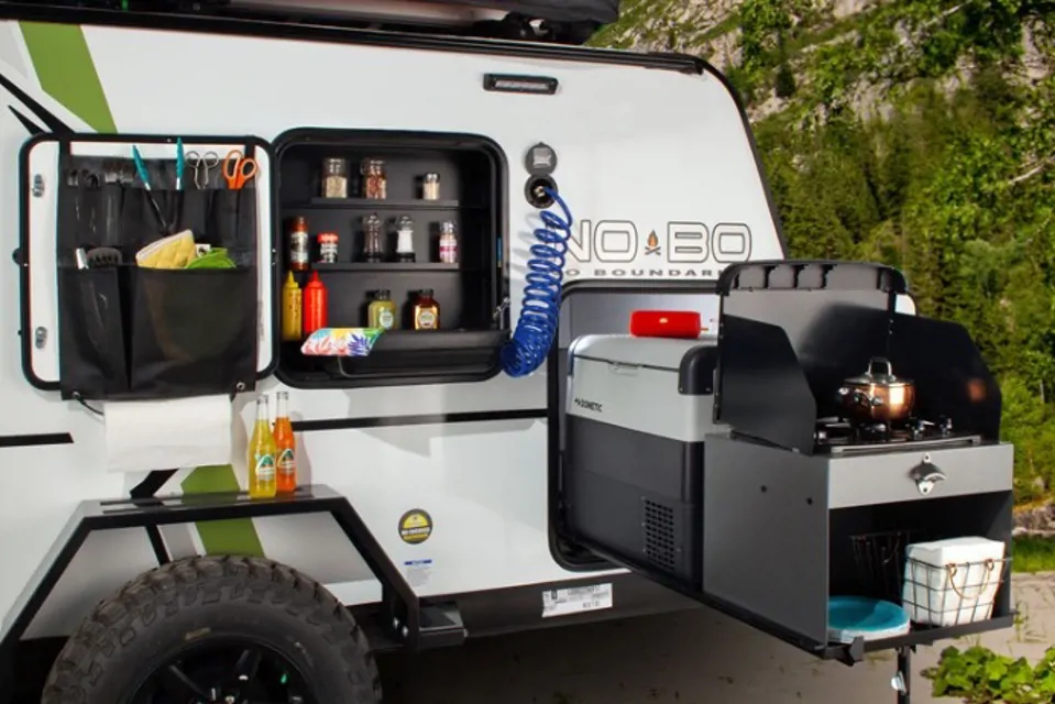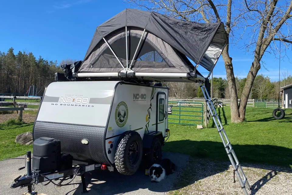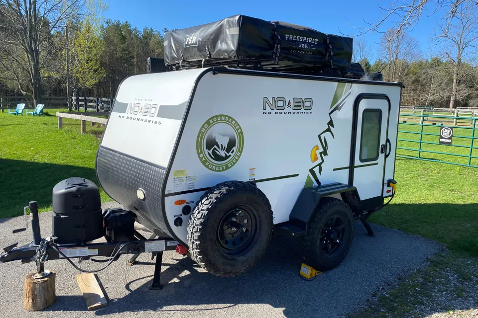 Go anywhere and bring anything. This 2021 NoBo 10.5 adventure sub-2000 trailer is complete with a laundry list of features, including wrap-around awning, 12V/110 refer, 60x82 queen bed, industry exclusive Rhino Rack Roof Rack Equipment, NoBo Nest Rooftop Tent, and the most ground clearance in its class! 30 gallon water tank. Tow with most small vehicles. 270 degree batwing awning! Propane cook top and fridge/freezer. Overland package! Easily fits 2 adults and 2 kids. 2” ball, air conditioner, heater, 30amp power. Kids love the tree house roof top tent that sets up in minutes!