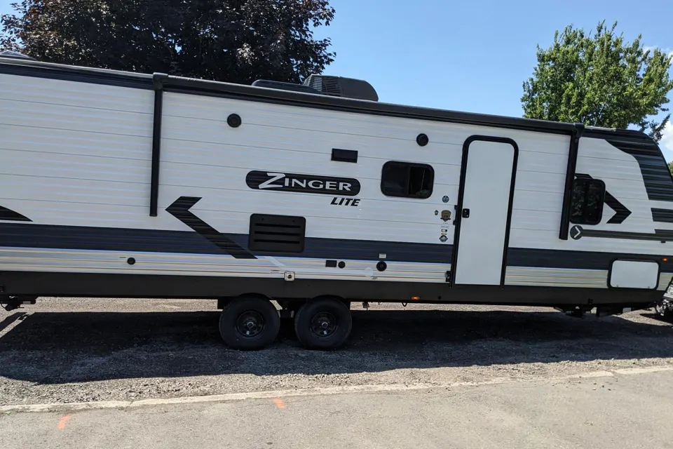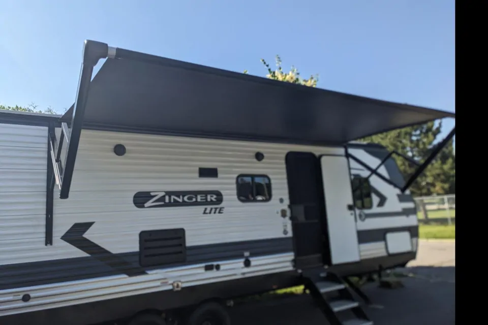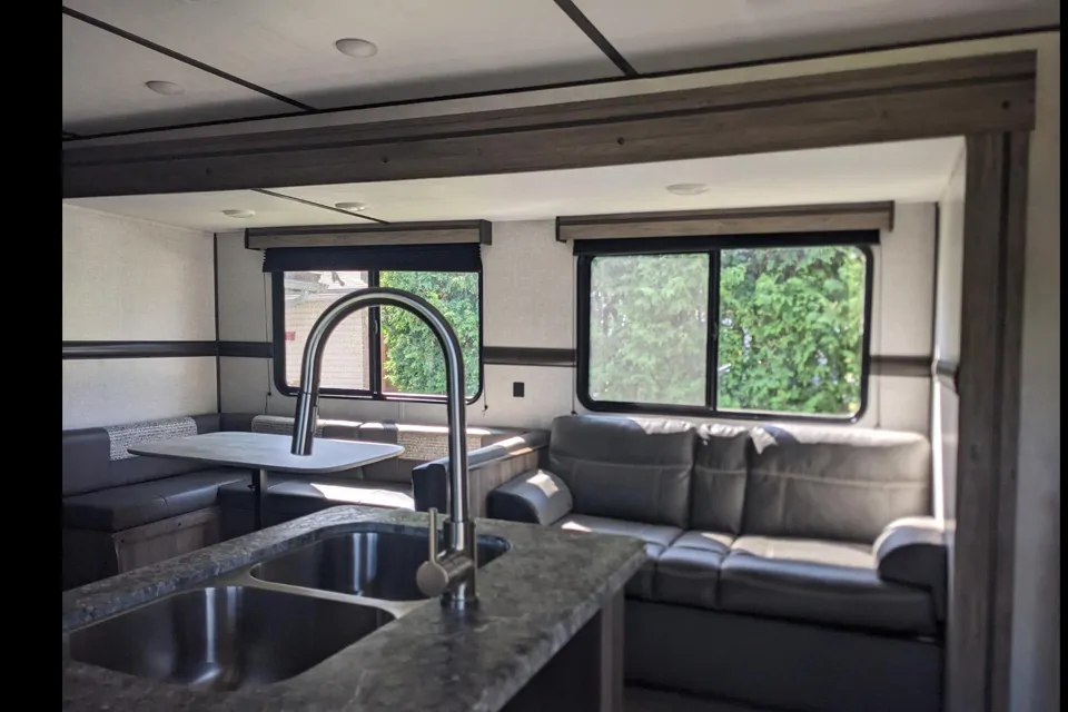 This Travel Trailer is a family friendly abode. It has all of the amenities you would need to make your camping adventures enjoyable but especially comfortable. You can explore what the outdoors has to offer while still coming back home to a night of rest with no worries about bugs, humidity or chilly nights. This RV offers plenty of space for a large family of up to 8-9 guests. As you can see in the photos, there are plenty of sleeping spaces for all of you. Let the memories begin!