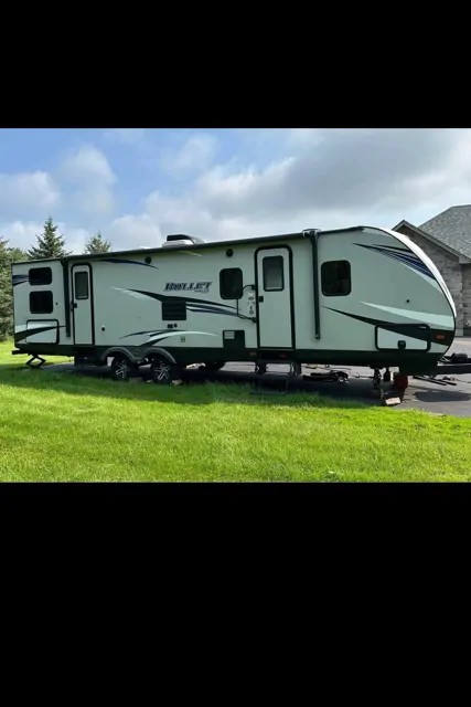 2019 keystone bullet 308bhs. Outdoor kitchen with bar fridge and burner. Has an outdoor shower, pull out couch, table that transfers into a bed and bunk room in the back. Fridge works on electric or propane and so does the hot water heater. Tv has the thermal package, 2 tip outs and no leaks.