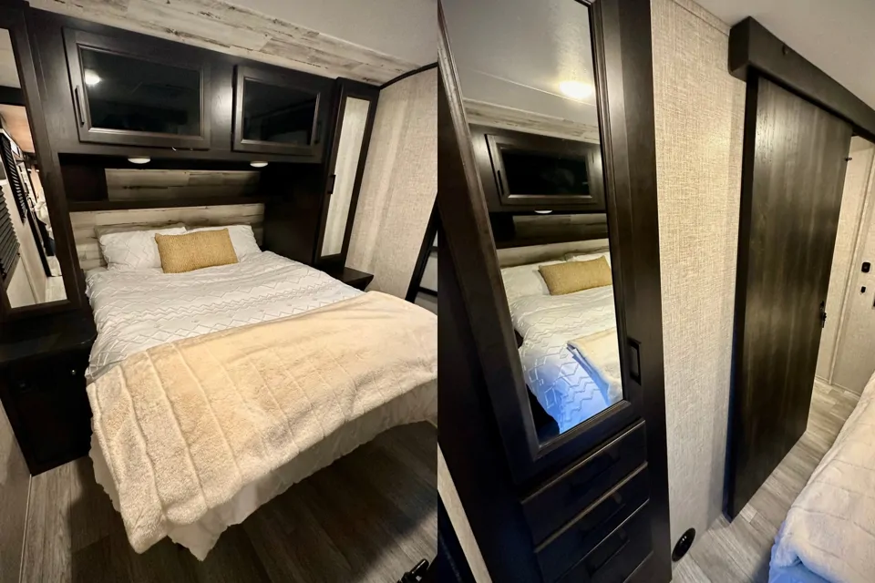 Enjoy added comfort with air conditioning and heating, and spend your evenings under the power awning with LED lights and outdoor speakers. There’s also plenty of storage space for your gear, making it easy to settle in and enjoy the ride.