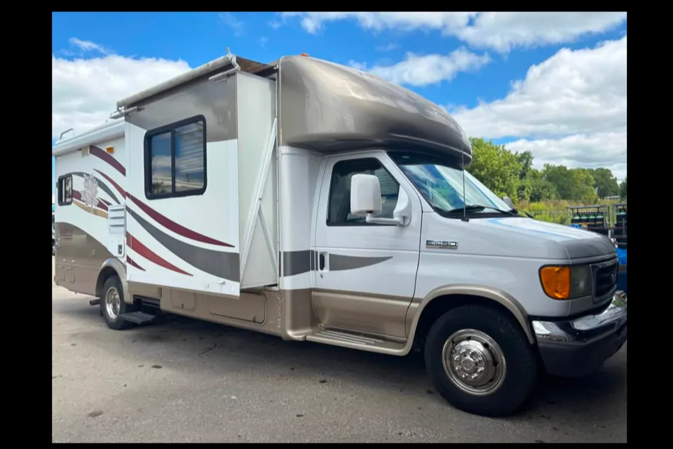 This 3 season 26ft Motorhome rental-Perfect for Couples, Start of 2026 only 25,000 KM (15,500 miles) on it. Drives nice, Dinning table goes down for a small child. Take your trip to the next level in this well-kept low kilometers class c motorhome. Designed for comfort and convenience, it features a spacious seating area that converts into a comfortable pull-out bed for two(Air coil mattress) with space for a third small guest with 2 slideouts. While it does not have a separate bedroom, the layout maximizes living space and makes it an excellent choice for couples. Lots of cuboard space, air-condition, furnace, back up camera, tv. Lots of fridge and freezer space,dishes,pots and pans,and utensils
