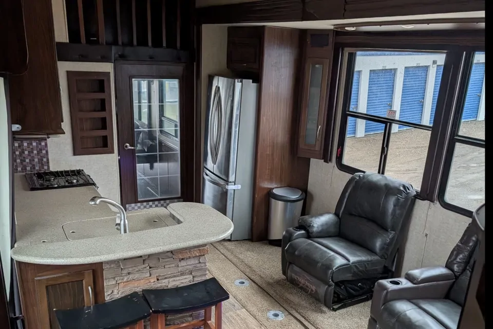 Looking for a comfortable and fully-equipped trailer for your next getaway? Our spacious fifth wheel camping trailer is the perfect home away from home. Whether you’re heading out for a weekend retreat or a long vacation you’ll have everything you need to make the most of your time outdoors.