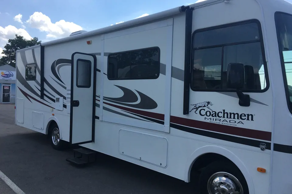 This 2012 Mirada Class A gas motor home by Coachmen, is a great option with plenty of features, comfort, and affordability. The 31 DF Silver Edition rides on a Ford F-Series Super Duty Chassis, powered by a 362 hp Triton V10 engine with 5 speed automatic transmission. Whether traveling with family, friends or your four-legged companions, there is more than enough room for everyone. Some features: Sleeps 6 - 2 Front Slides opposite each other enables a layout for an extra-large living area: comfortable slide-in bench dinette, sofa with convertible bed; - Rear Master bedroom with a walk around Queen bed, nightstands, and overhead cabinets; - Kitchen includes a 3 burner stove, oven, double sink, microwave, fridge/freezer; - Bathroom/Dressing Room with 2 sliding doors for privacy provides a very spacious area with a corner shower, toilet, sink, and wardrobe. Power Retractable Awning, Automatic leveling jacks, Tow capacity 5,000 lbs., Air Conditioner 27,000 btu, Heater 30,000 btu, ONAN 4000 generator, TANKS: Fuel 80 gal, fresh water 54 gal, grey 43 gal. Rear Air Ride suspension, ample exterior storage, Safety and Propane Certified Note: Plenty of room to maneuver with slides in when you pull over for a quick lunch break (see photos). Visit us and see if this motor home is the one for your next adventure.