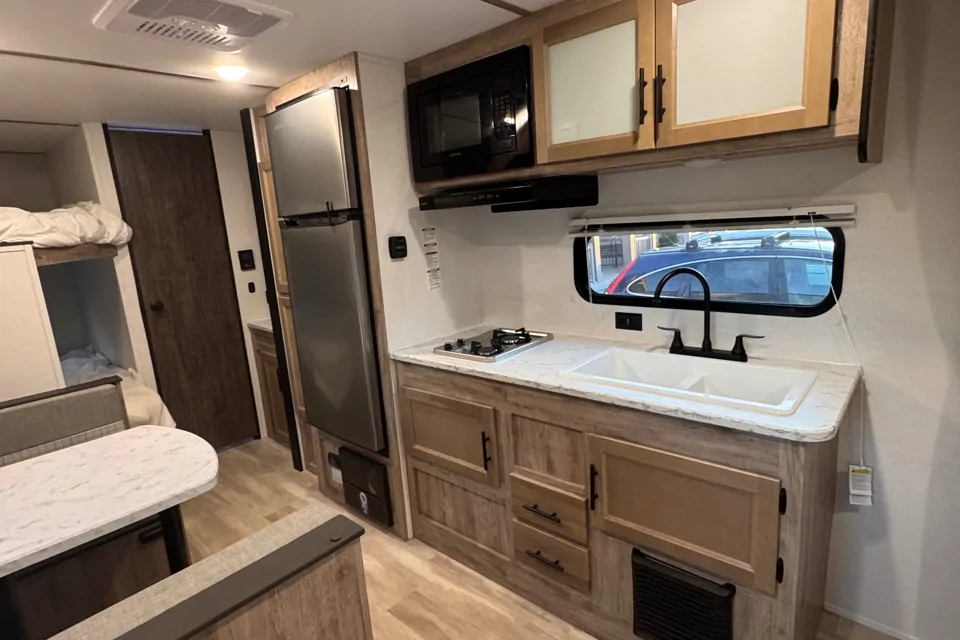 - **Spacious Sleeping Arrangements:** Sleeps up to 6 adults, with room for 4 kids and 4 adults, thanks to the cozy bunkhouse floor plan (Double Bunk, Dinette Conversion, Queen Bed)