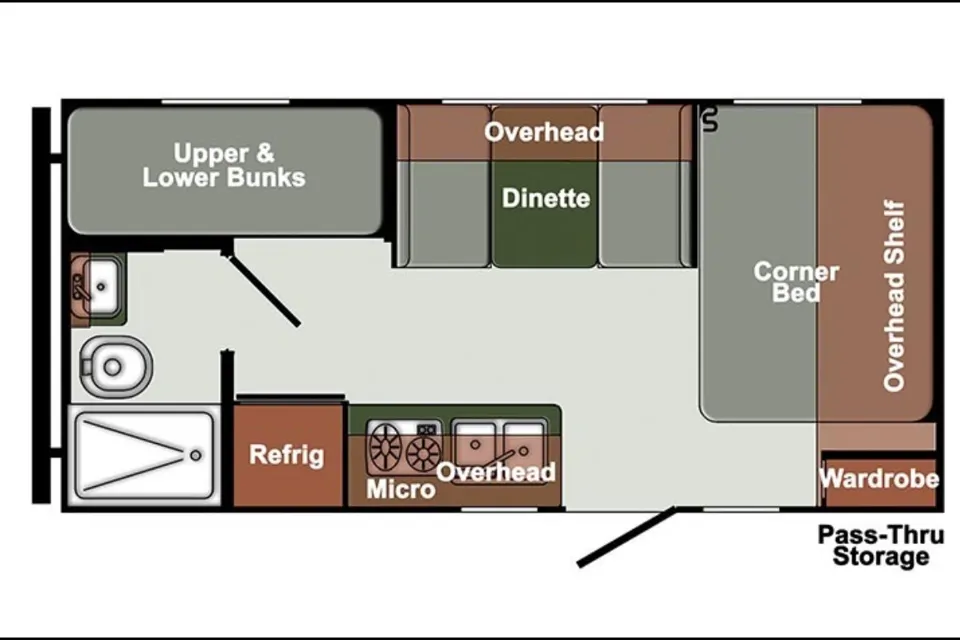 ✅ Sleeps 5 (Queen bed + single bunk beds + dinette conversion)