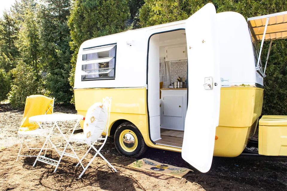 1973 Trillium Trailer is the honey bee yellow 13’ foot trailer accommodating up to three people. Newly renovated, extremely clean, bright and cheerful, perfect for a little romance for two in the great outdoors. Simple and quick set up. For the love of bees and wildflowers, you’ll enjoy a unique stay.