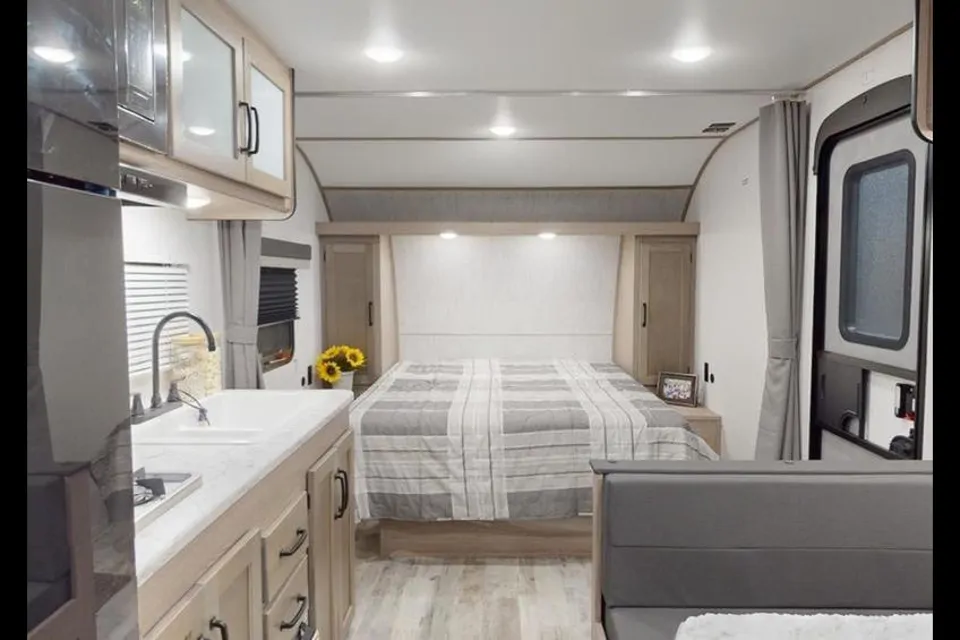 Experience the great outdoors in style with our spacious and comfortable Grandriver trailer, perfect for families and adventurers alike. This 25ft bunkhouse offers cozy sleeping arrangements for 7 with ample space for everyone. Enjoy modern amenities, including a fully-equipped kitchen, bathroom, and cozy dining area.