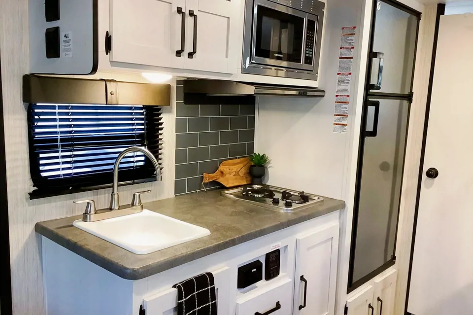 Beautiful 2021 trailer ready for your summer adventure! This light and compact 21' travel trailer allows for easy towing without compromising the amenities you desire to make for a memorable camping trip. Sleeps 5 comfortably including a queen bed at the front, bunks at the back and a fold down dinette bed. Lots of storage, full fridge, power jack and awning, outdoor shower, air conditioning, heat, and so much more.