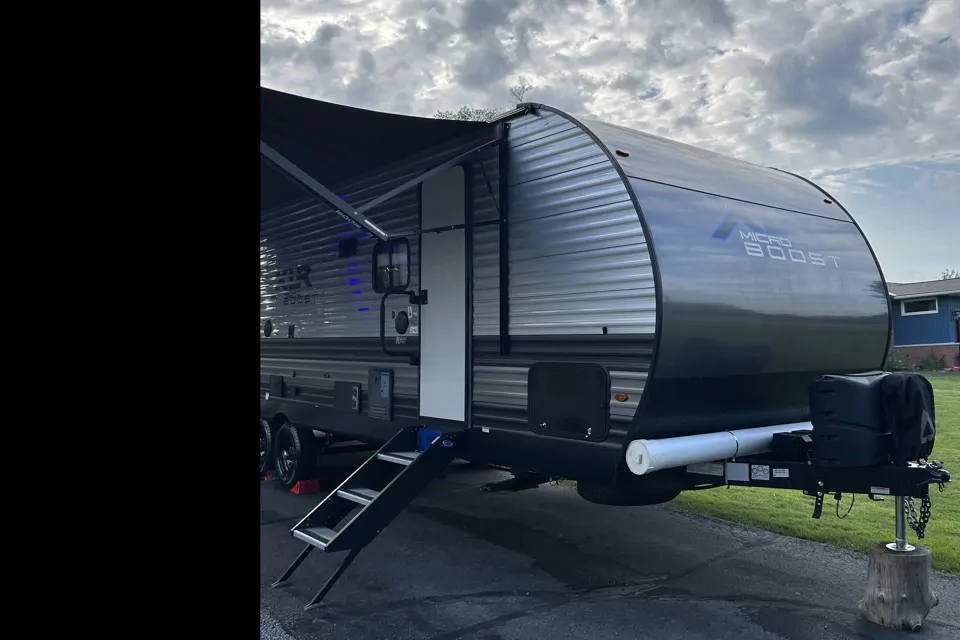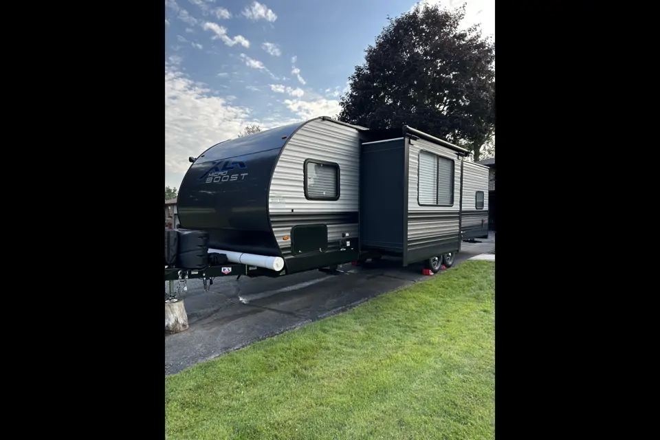 Great toyhauler and great layout for families as there are 2 exterior doors there is a bathroom separating the 2 areas within the trailer. Everything is modern including hot water on demand, solar for charging the battery and electric awning. Will deliver to the setup spot depending on distance and time. Everything is included and ready to camp. Just bring your towels and sheets. Please no smoking inside the unit and limit pets to one well behaved dog thanks. I have a blue ox load leveller and sway control making towing a breeze. I also have towing mirrors if needed. I take great pride in my trailer and hope you do the same. Thanks look forward to meeting you.