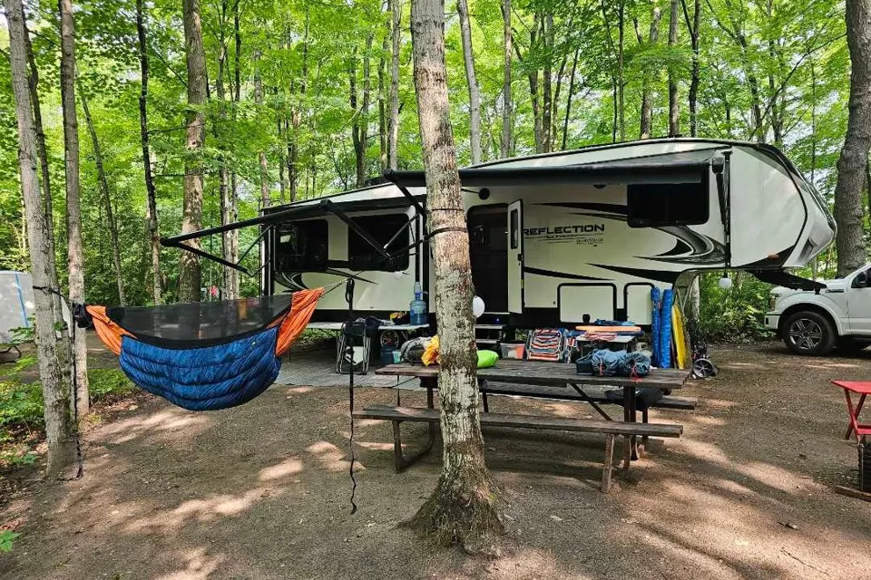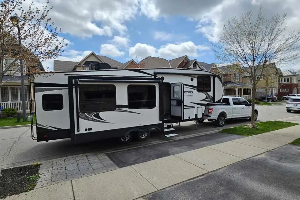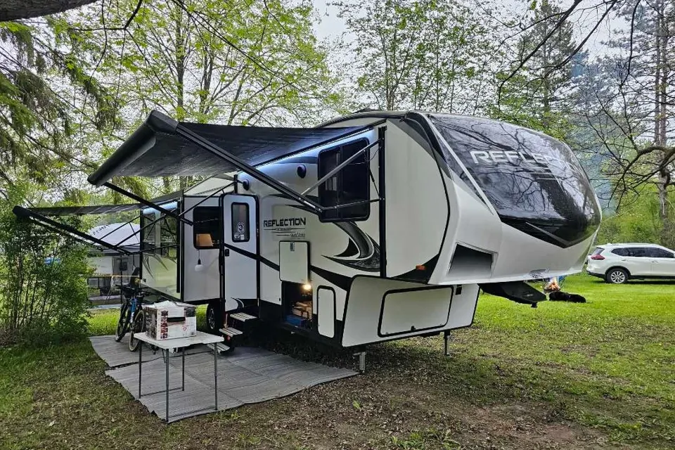 Beautiful fifth wheel perfect for your next adventure, please reach out with any questions. We have everything you need for a great trip. Full kitchen, bathroom, and tons of extra storage. Have a great day!