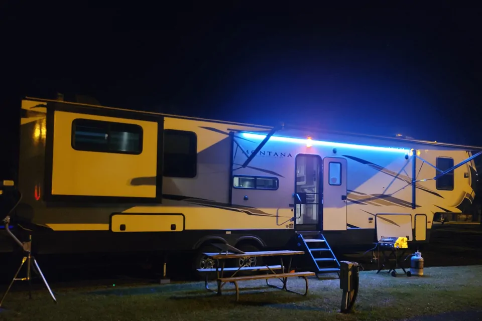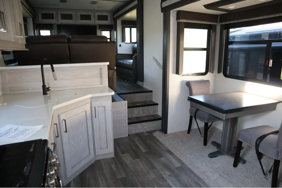 • Outdoor Living: Includes a power awning, outdoor speakers, and an exterior TV.