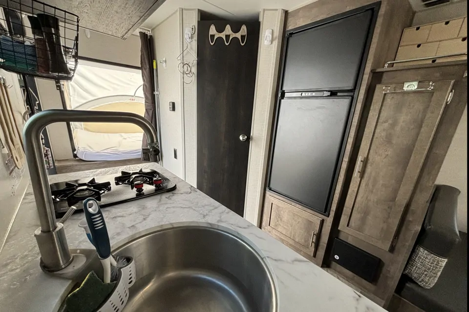 Skip the stress of towing, backing into tight spots, and dealing with messy hookups. We bring the camping experience directly to your favorite provincial park, private campground, or even your backyard! Our 2020 KZ Escape 160RBT is a modern, clean, and incredibly spacious hybrid trailer that offers the perfect blend of a classic "canvas" camping feel with the luxury and security of a hard-sided RV.