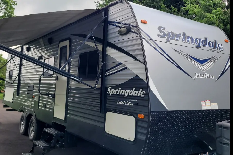 Create Unforgettable Memories with your family in Our 2017 Springdale SG270LE! Imagine waking up to the sounds of nature, enjoying your morning coffee by a crackling campfire, and exploring the stunning beauty of Ontario's provincial parks. Our comfortable and reliable 2017 Springdale SG270LE travel trailer (approx. 32' 5" in length) is your ticket to an incredible Canadian adventure! We've thoughtfully equipped our RV to ensure your trip is as relaxing as possible. You'll find a spacious interior with a full kitchen for easy meal prep, a private bathroom, and comfortable sleeping for 5+guests and outdoor kitchen. The large power awning extends your living space outdoors, perfect for evening gatherings or escaping the sun. Whether you're planning to explore the vastness of Ontario, hike the trails, or simply find a peaceful lakeside retreat, our Springdale is ready to make your dream trip a reality. We pride ourselves on providing a clean, well-maintained, and user-friendly experience. We're happy to walk you through all the features before you hit the road. PERFECT FOR FAMILIES OF 5!