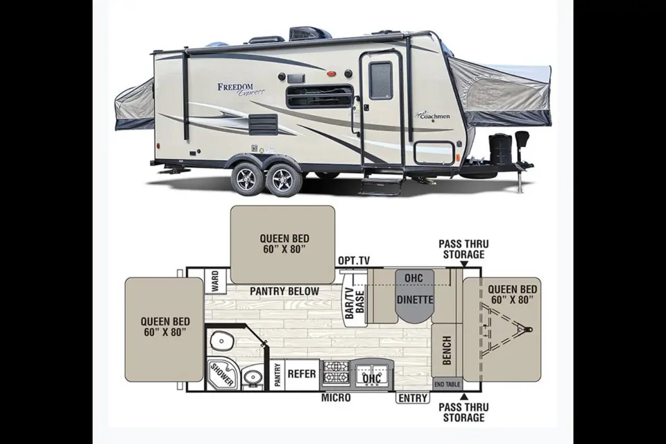 Our 2017 Coachmen Freedom Express 21TQX is a rare Triple-Tent Hybrid that offers the open-air feel of a tent trailer with the security and amenities of a hard-side travel trailer. It’s lightweight and can be towed by many SUVs and half-ton trucks. It is also equiped with electric brakes, which are essential for safe stopping.