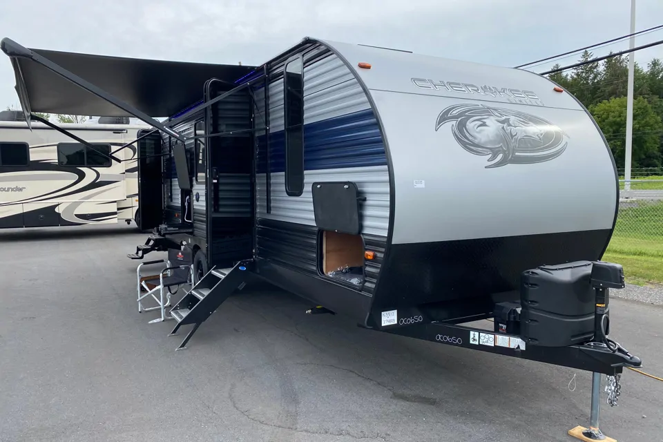 Ready to hit the road without sacrificing comfort? This 2020 Forest River Cherokee is the perfect rental for your next getaway. With 27’4” of cozy living space (33’ total length from tip to tip), this travel trailer comes fully equipped for families, couples, or groups looking to explore in style.