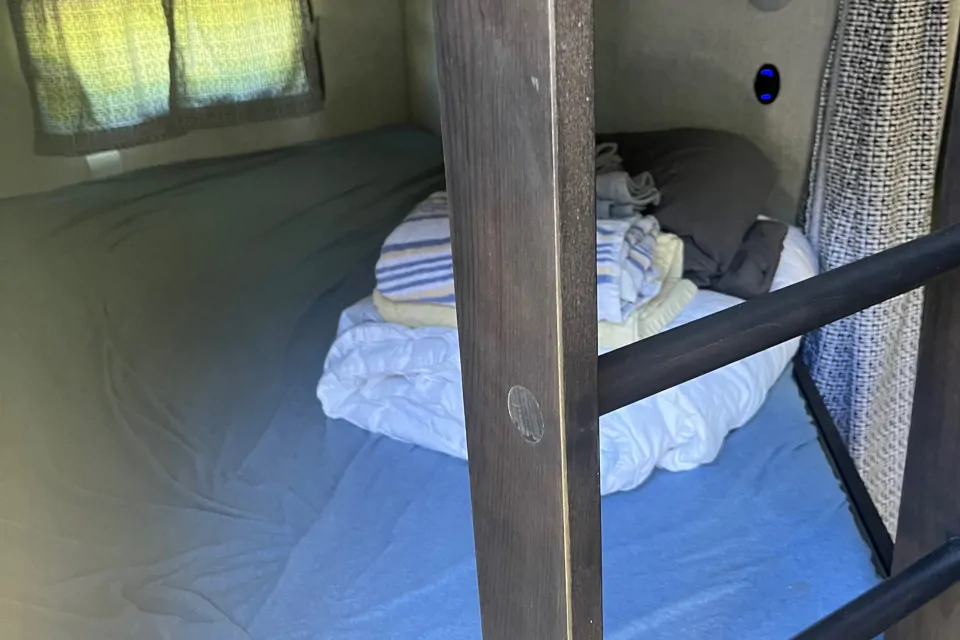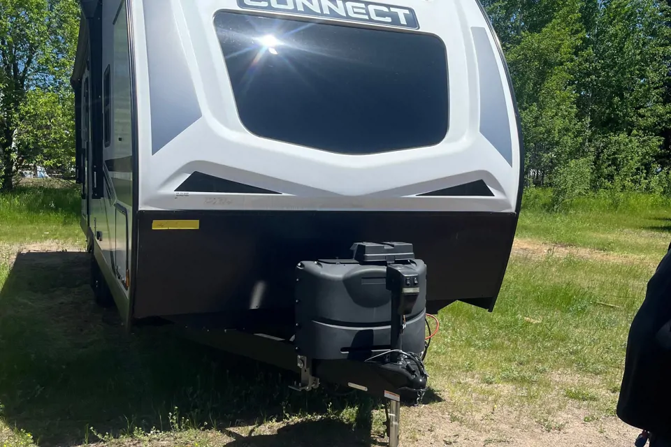 Only used once last year. Beautiful trailer inside. Lots of room to walk around in there as well. Comes with dishes and cutlery. Propane as main source of heat and power. Can be plugged in to save on propane usage