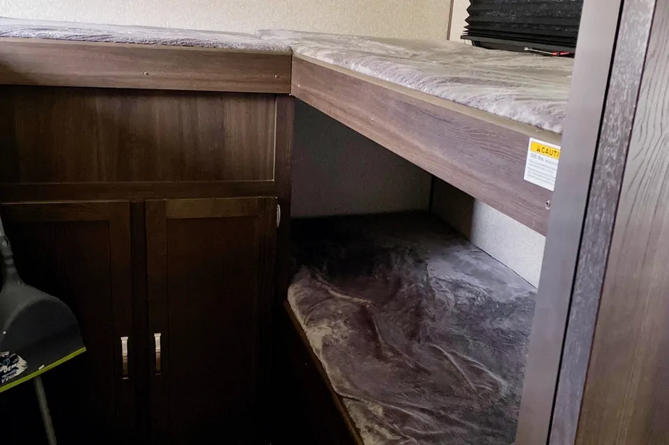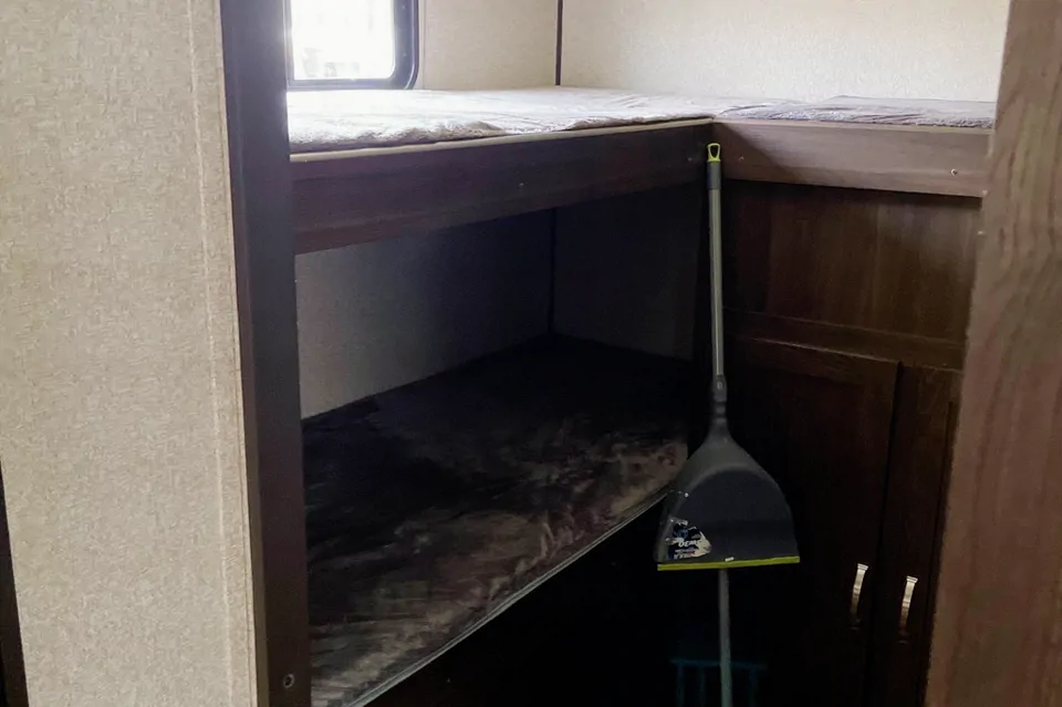 We have a 29 foot Springdale by Keystone that is very spacious and sleeps 9. Perfect for a family adventure. Has a bunkhouse in the back with 4 bunks. Separate queen bedroom up front and the dining table and sofa both turn in beds. Large slide out that encompasses the table and sofa provides a lot of extra space. Has an am/fm Bluetooth/DVD stereo. Has indoor and outdoor speakers. Also has a tv for movies inside of it is a rainy day. Has an outdoor kitchen consisting of fridge and double propane burner.