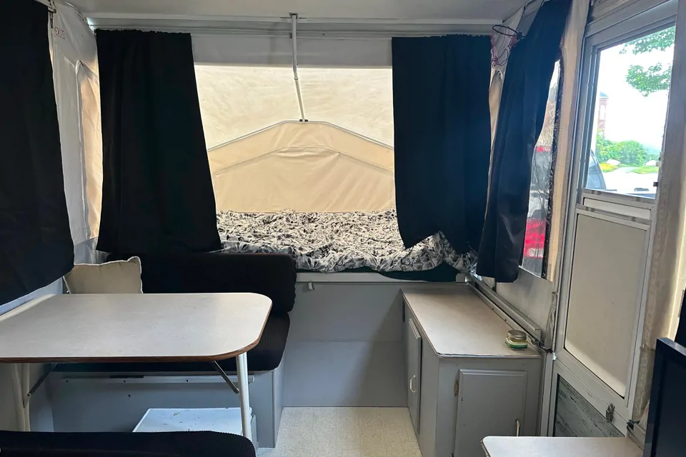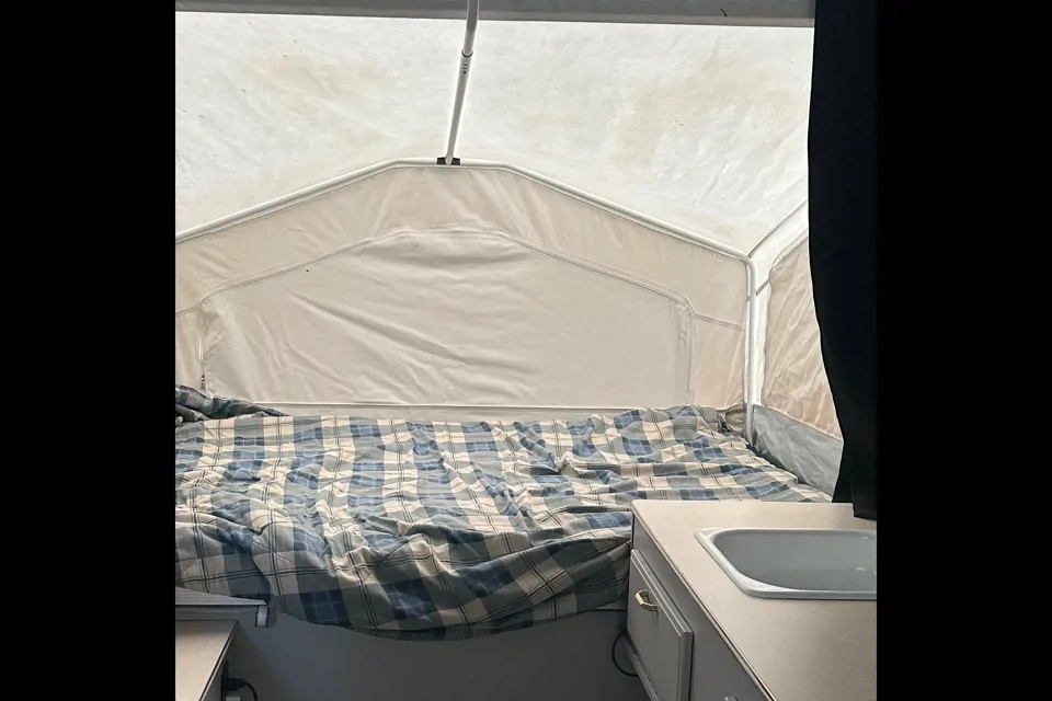 Sweet Annie is a 2001 Rockwood Freedom tent trailer. Fully equipped with a queen-sized bed, double bed, optional dinette sleep area (sleeps 6), sink, outdoor propane stove, fridge, ventilation, furnace and Dyson cooling fan. Tons of storage space underneath for all of your adventure gear!