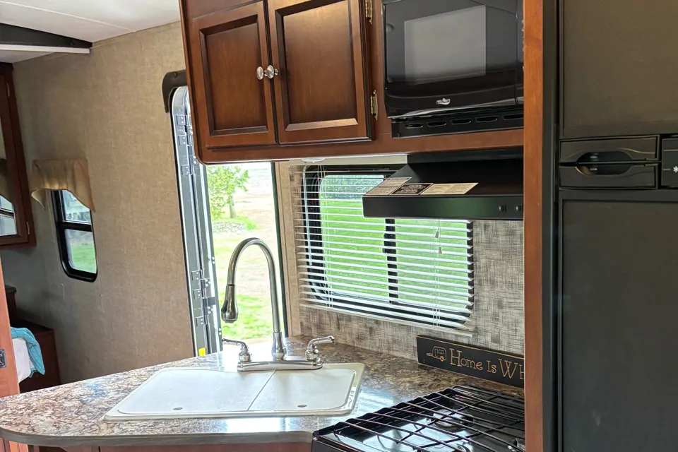 Comes with pots and pans, utensils , plates and bowls.toaster & Kettle
