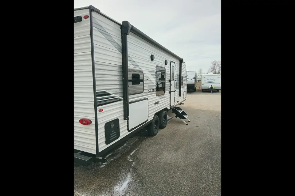 A beautiful brand new 26ft SLX jayflight jayco travel trailer solar power equipped for anyone wanting to do off grid camping (option)That sleeps up to 10 people,with a queen bed in the masters bedroom a dbl mattres on both bunks a dinnette bed and a pull out couch . It's a light wieght trailer wieghing 2397 kgs . Comes with all kitchen needs pots pans and utensils