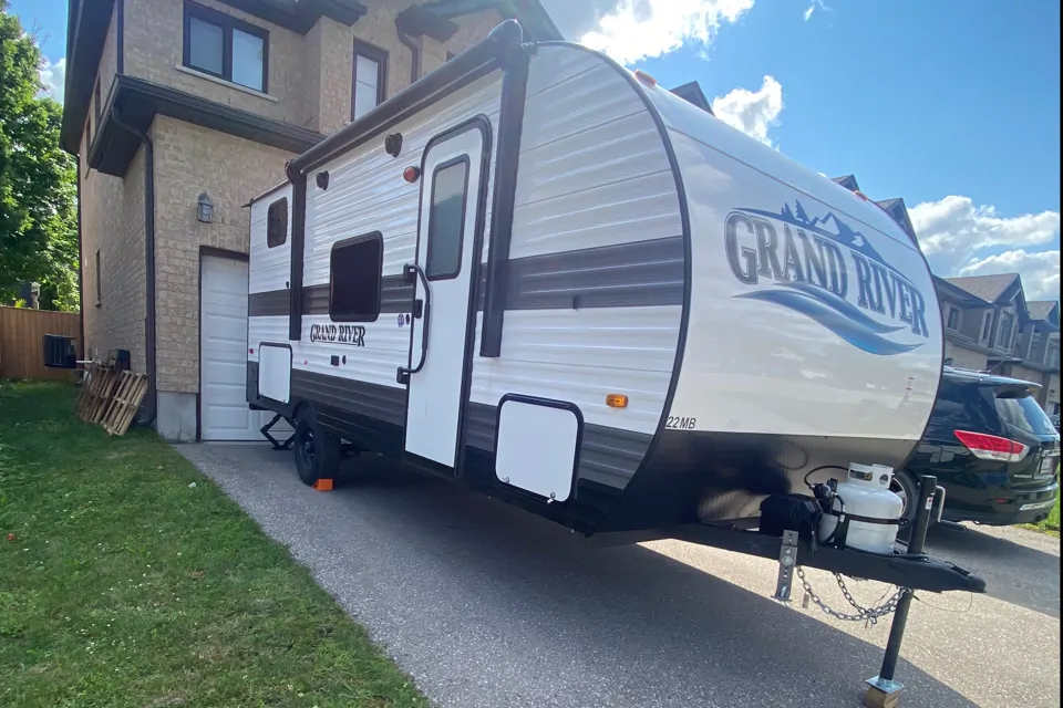 We’re thrilled to share our beautiful Grand River RV travel trailer with you. Purchased brand new just last year, our trailer has already been the heart of many unforgettable adventures with our family of five throughout last summer.