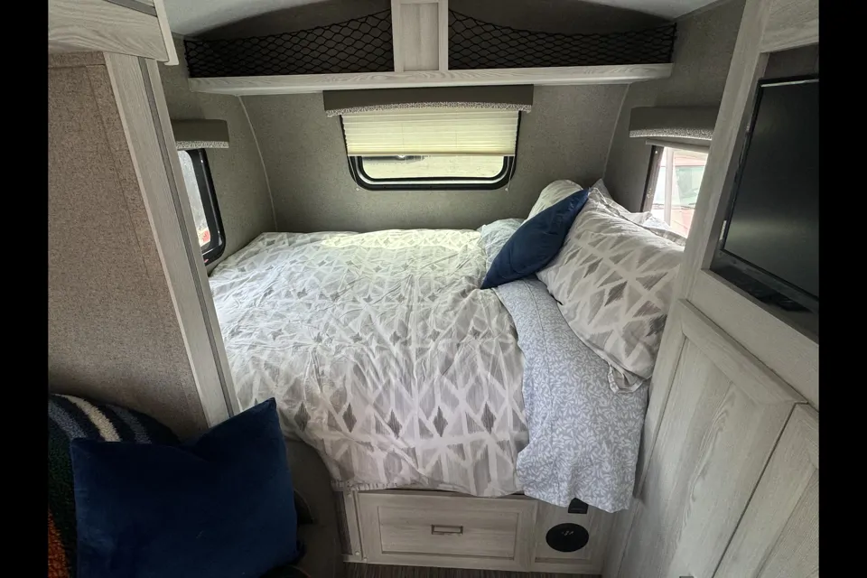 This 2020 Forest River Rockwood Geopro G19FBS is the perfect size and very roomy, her name is Jenny. She has a 72" wide couch that also becomes a full size bed as well as a free standing dining table and queen size bed. With all the kitchen and bathroom amenities you could ever need. Solar panels on roof give you the peace of mind that you will always be able to turn on the lights and charge your phone.