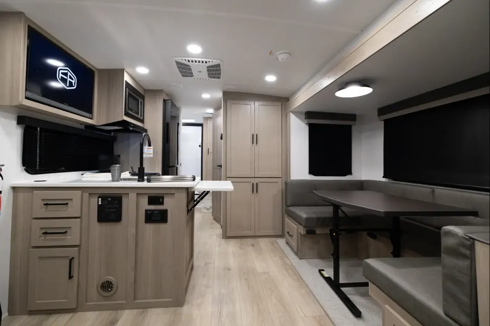 The large slide-out creates an open living space with a comfortable dinette, full kitchen, and plenty of room to relax. The private walk-around queen bed offers a true bedroom experience, while the full bathroom with shower makes extended trips easy and convenient.