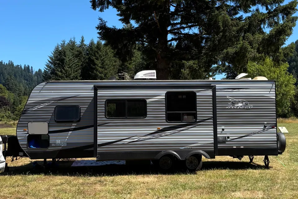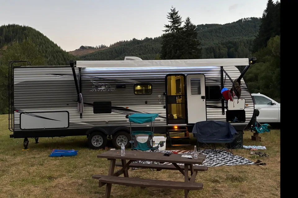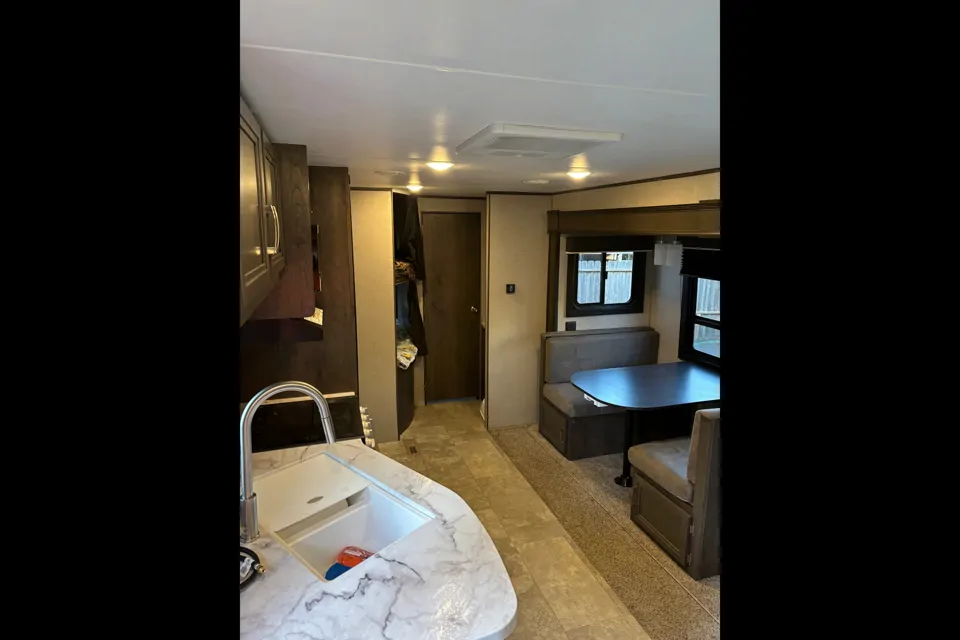 Looking for a weekend get away with the family and don’t want to buy a trailer then this is perfect. Lots of room for kids the kids will love the bunk beds. Or if they aren’t old enough for the bunk beds they can sleep on the pull out sofa or the dinette. Perfect for cold and rainy days or hot and sunny with the insulation this trailer has compared to others. Book now and let the adventure begin