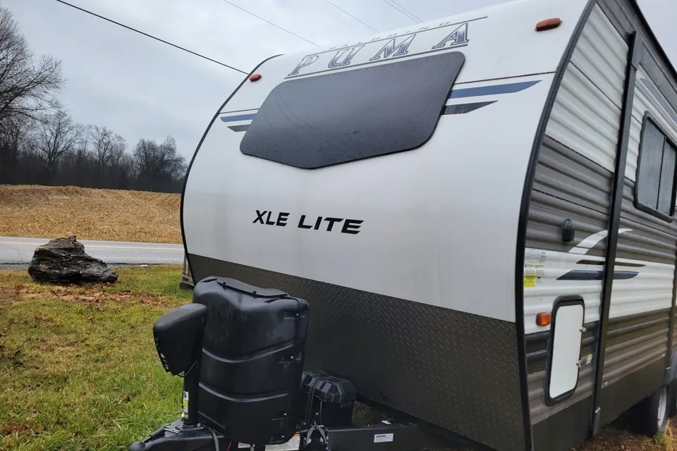 Stove,oven,inside refig and freezer,shower ,sink,toilet,electric awning, outside refrigerator and pull out griddle.Radio,central air and heat,TV in bedroom and living rood
