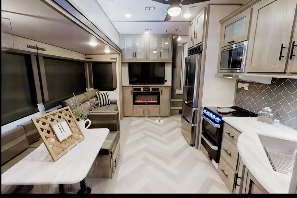 - Shabresha U.Jul 2023Delivered by hostFirst I would like to say the pictures don’t do this beautiful RV any justice! This RV was so nice! Megan had everything we needed in there as far as cleaning supplies, toiletries, cooking utensils, drying racks, tables & other camping necessities! She was very prompt in responding when we had an issue! The RV was very clean from top to bottom. My family and I enjoyed our stay! Definitely recommend their RV and it was a great experience!