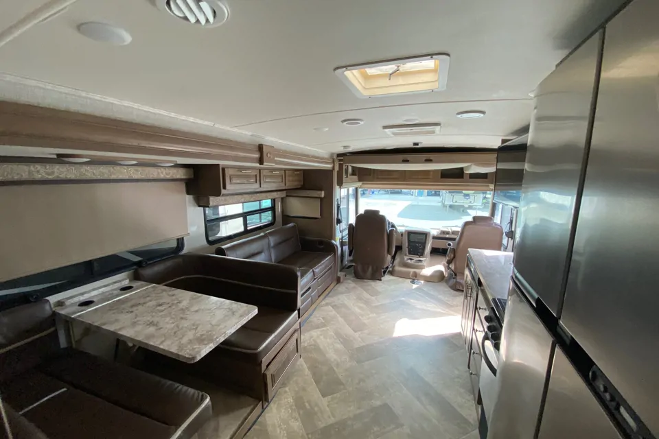 Plenty of room for the family. Sleeps 10! Two full bathrooms. Generator, full size refrigerator. All the luxuries of home! 4 indoor tv’s, 1 outdoor tv. Indoor and outdoor speakers. Large awning. Power auto leveling. King master. Bunkbeds. Dream dinette. Sleeper sofa. Power bunk in front. Lots of under belly storage. Low mileage unit.