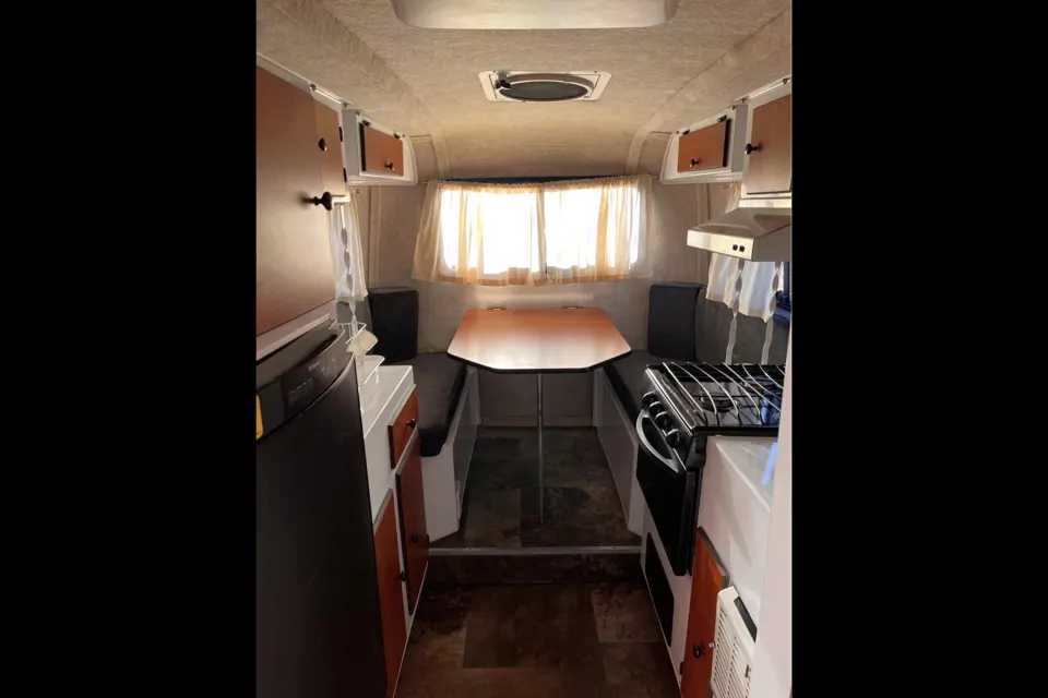 Meet our charming 2008 Scamp 16 (Layout 4) — the lightweight fiberglass camper that helped our family fall in love with the outdoors. With two cozy bunk beds and a rear dinette that converts into a comfortable bed for two adults, it’s the ideal setup for a couple or a family with two kids looking to explore without the hassle of a big RV.