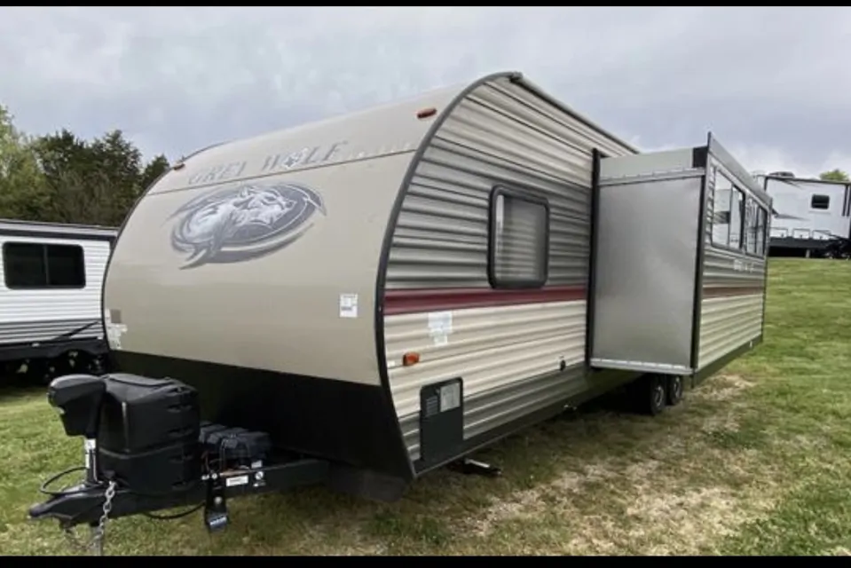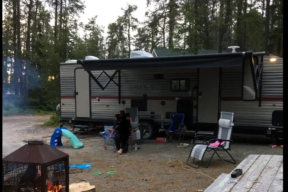 Belle roulotte pouvant loger votre famille durant vos vacances et vous créer de superbes souvenirs elle possède un foyer interieur pour les soirées d’ambiance,et le necessaire pour la cuisine extérieure