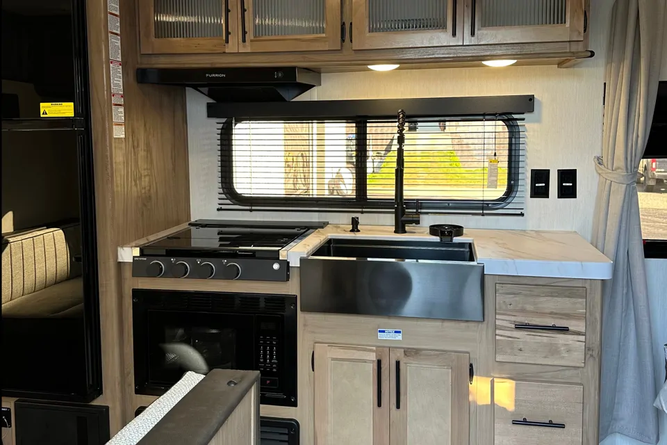 Cette roulotte de 22 pieds est parfaite pour une escapade en famille mémorable. Spacieuse et très lumineuse, elle offre un intérieur confortable, très bien équipée (grand réfrigérateur, air fryer/micro-onde, bain/douche, panneau solaire) et avec beaucoup d'espace de rangements. Son agencement pratique garantit une expérience agréable pour vos vacances en famille.
