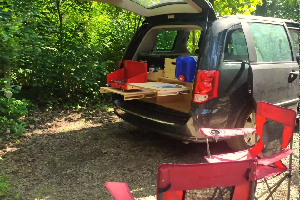 Nous l'avons pensé pour convenir au voyage à 4 (avec nos enfants en siège bébé) avec la possibilité de déplier les sièges et ranger le lit derrière pour la route, ou rentrer les sièges sous le plancher et installer le lit ou les banquettes. Nous avons aussi la tente avec matelas gonflable pour ceux qui n'auront pas la chance de dormir dans Philomène. Elle dispose d'un frigo, powerbank, rideaux et tout l'assortiment de camping, gaz, reserve d'eau + évier, lampes, chaises, ustensiles,propane, etc.