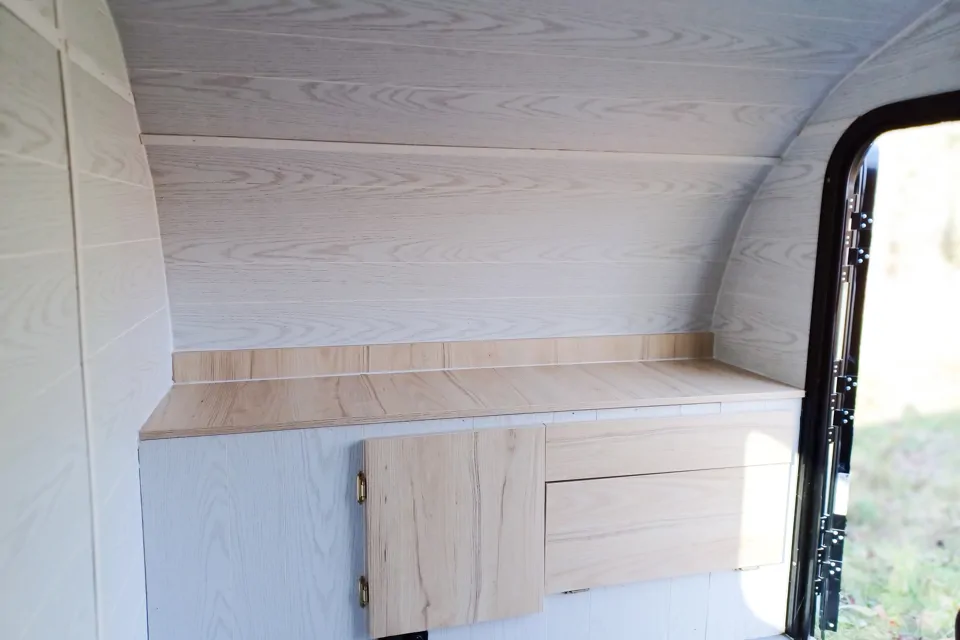 Confortable mini roulotte parfaite pour 2 personnes.